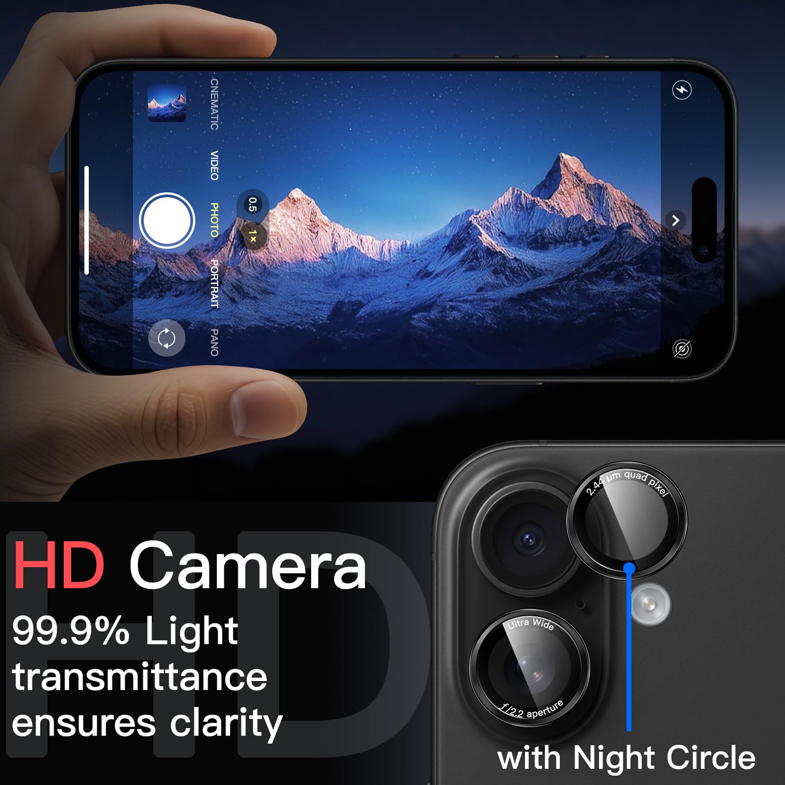 • [High Definition] The glass lens protector with 99.99% light transmittance ensures the original quality of photos and videos. Moreover, the oleophobic coating effectively keeps fingerprints, sweat and oil from gathering