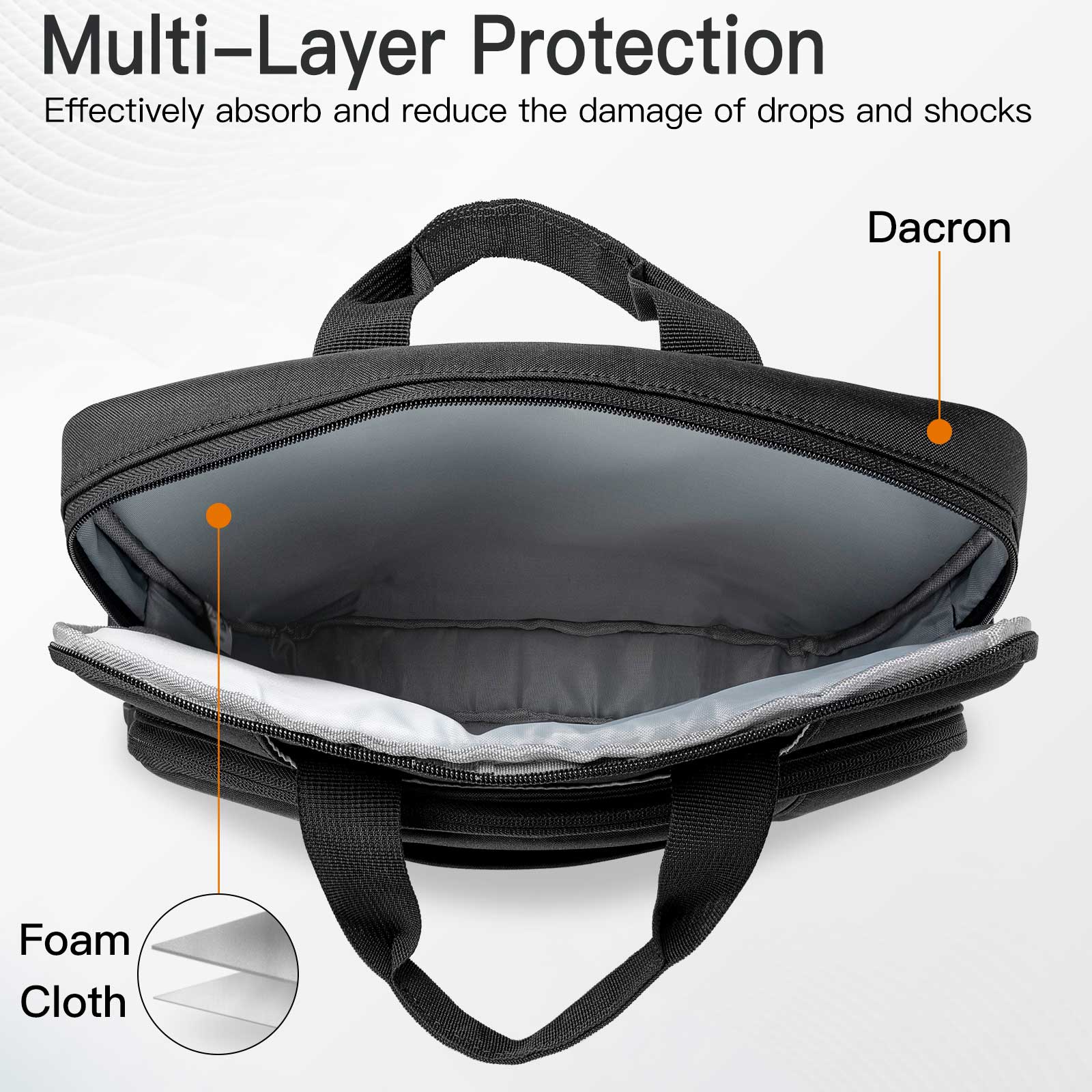 • [Trusty Durability] Waterproof external fabric, shock-proof sponge, and inner foam cushions offer comprehensive protection to your laptop. Effectively protects your device from unwanted scratches and shocks