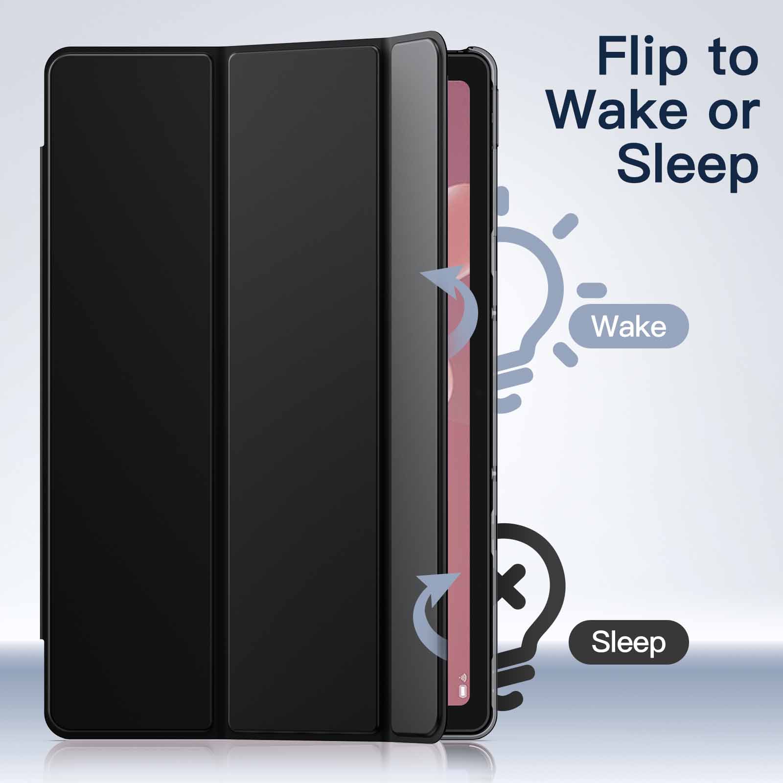 [Auto Wake/Sleep] Automatically wake up your tablet or put it into a sleep mode when the front cover is opened or closed. Moreover, it will not open by itself thanks to the strong magnet