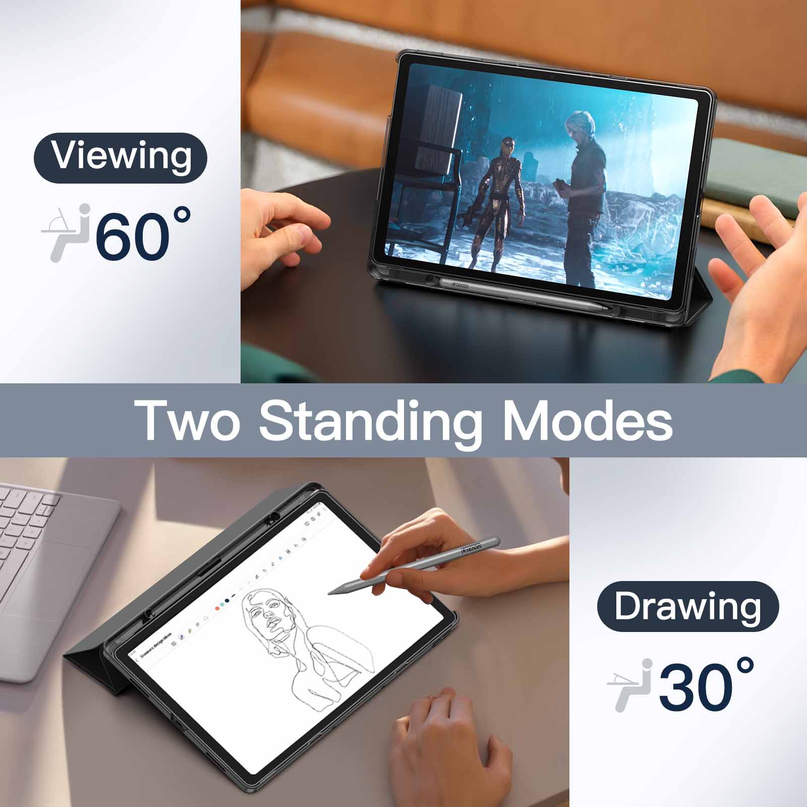 [Tri-Fold Stand Cover] The front cover can be folded into a stand to support your tablet in two different positions for viewing and typing