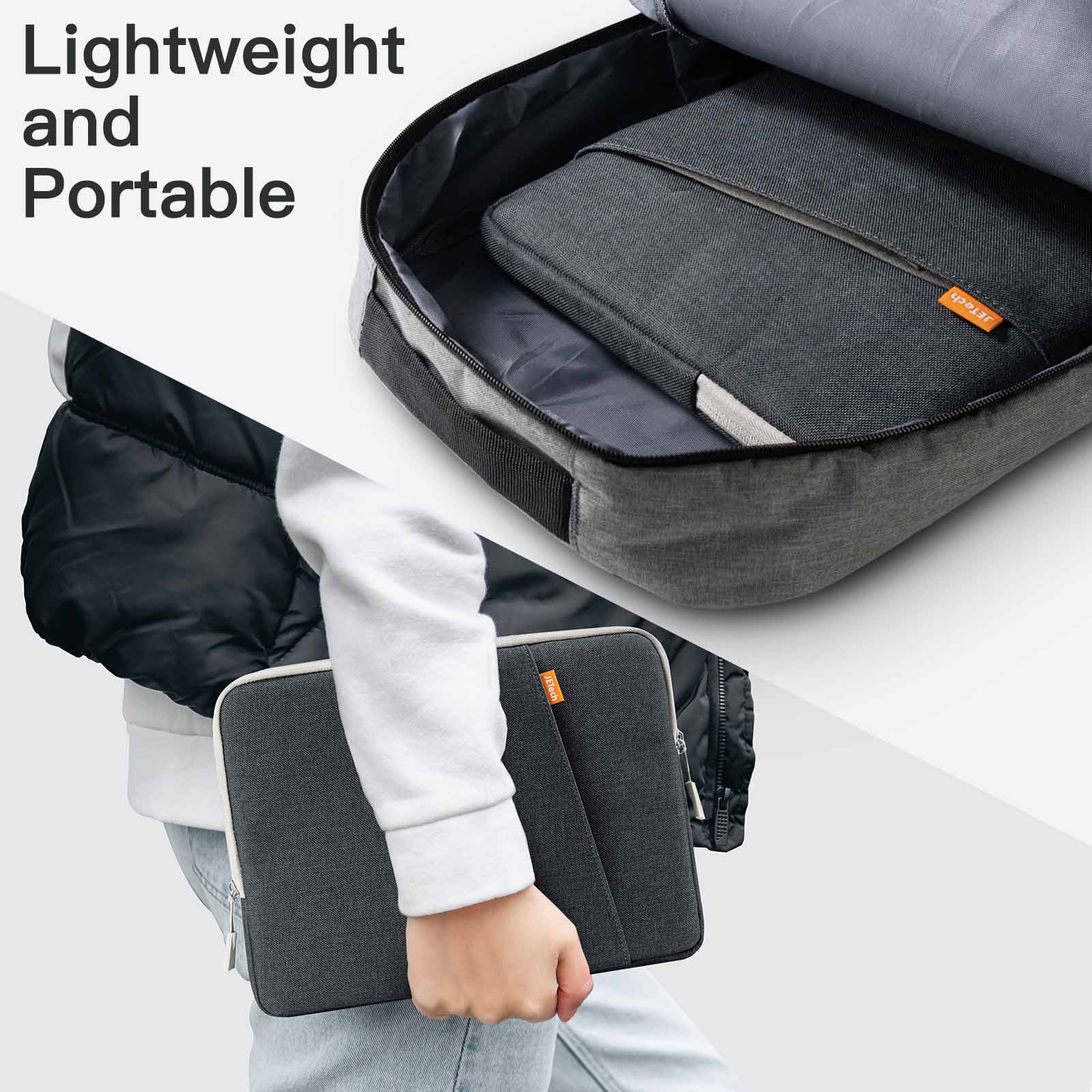 The durable sleeve features inner foam cushions to protect your tablet/laptop against dust, scratches, drops, and shocks. Slim, lightweight and easy to carry around or slide into a briefcase, backpack or suitcase