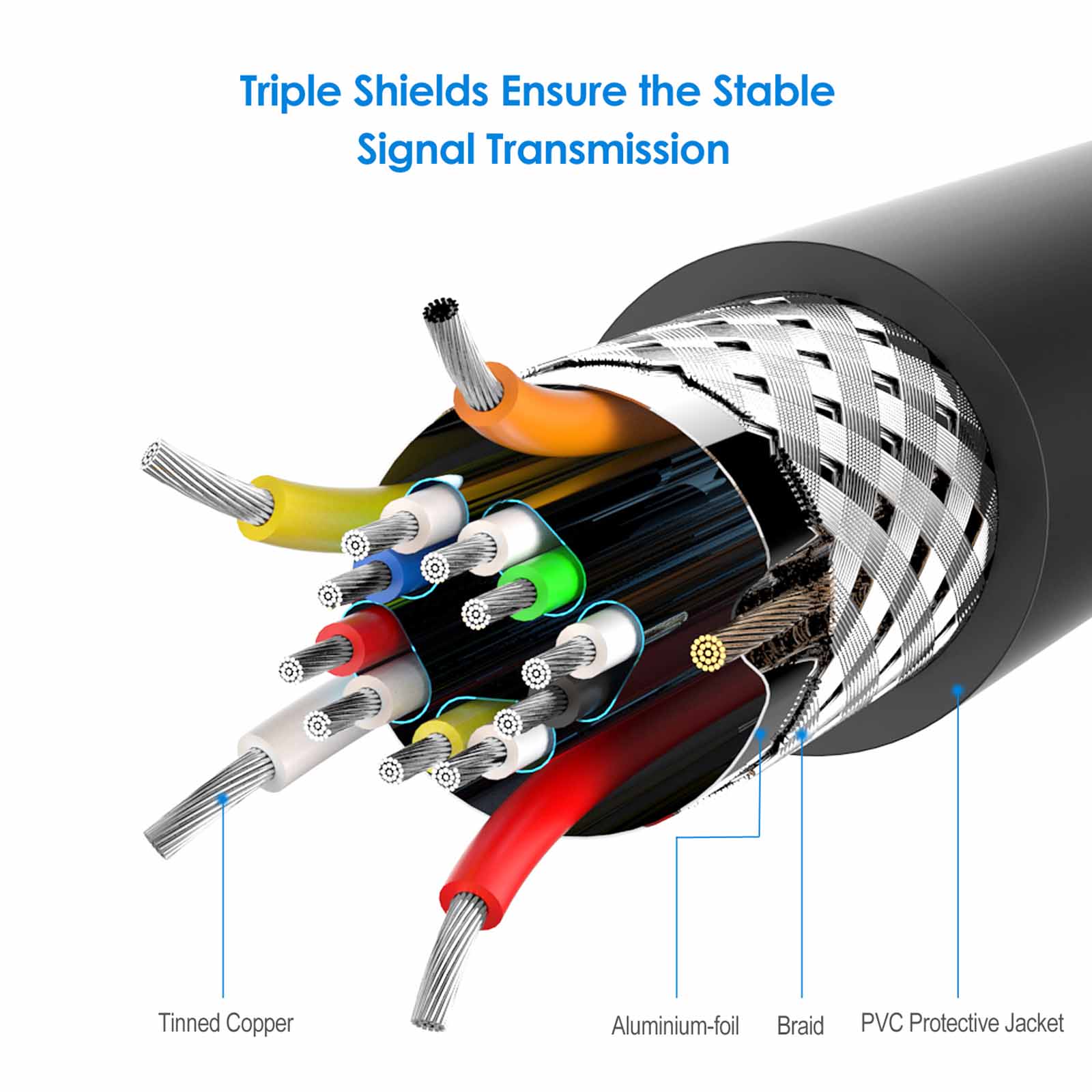 Gold-plated connectors for superior connectivity, PVC outer coating increases durability. Backwards compatible with all earlier HDMI standards