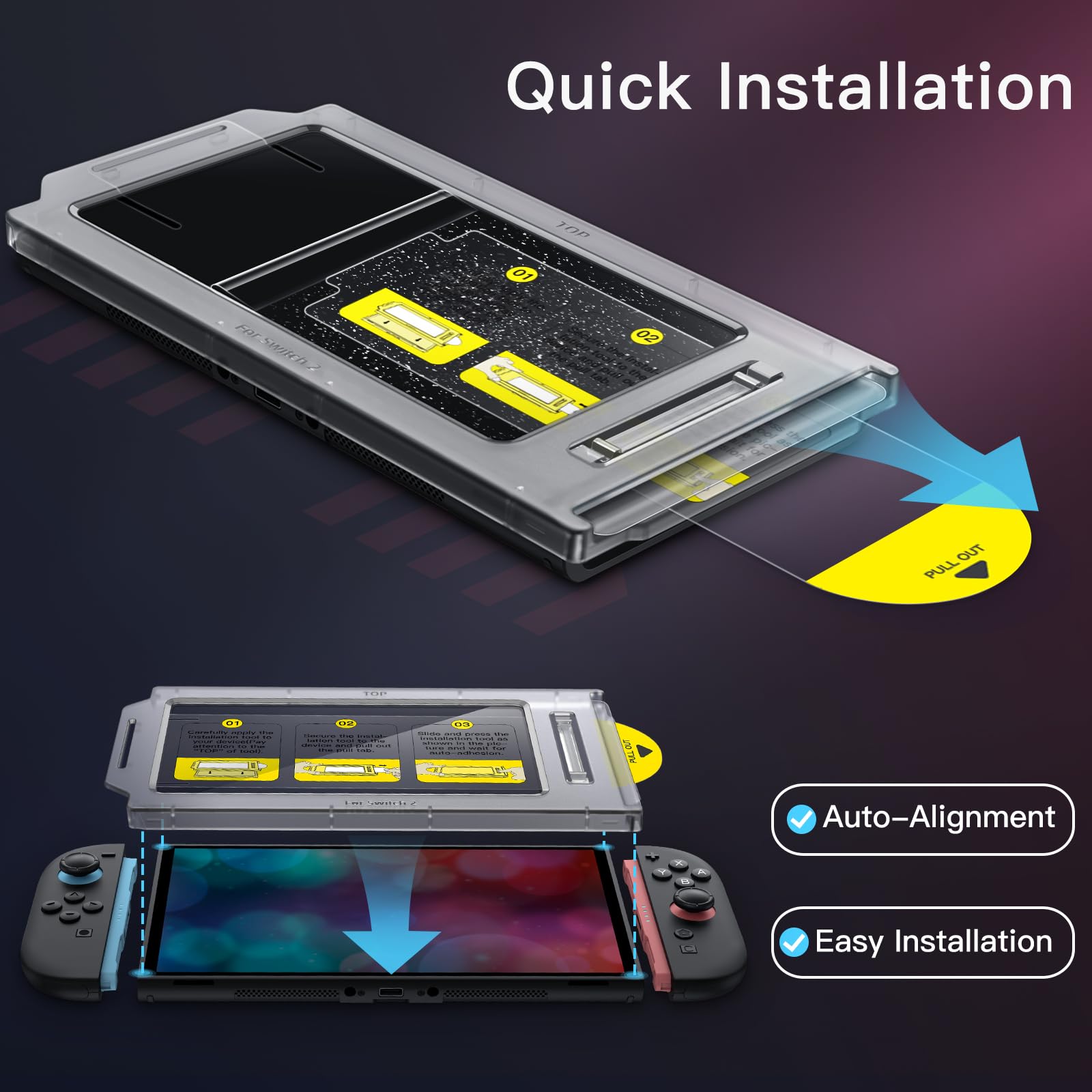 • [Quick and Easy Installation] Equipped with an automatic alignment tool, simply pull out the pull tab and the screen protector will automatically align quickly. No need to worry about misalignment or bubbles. Please watch the installation video before installation