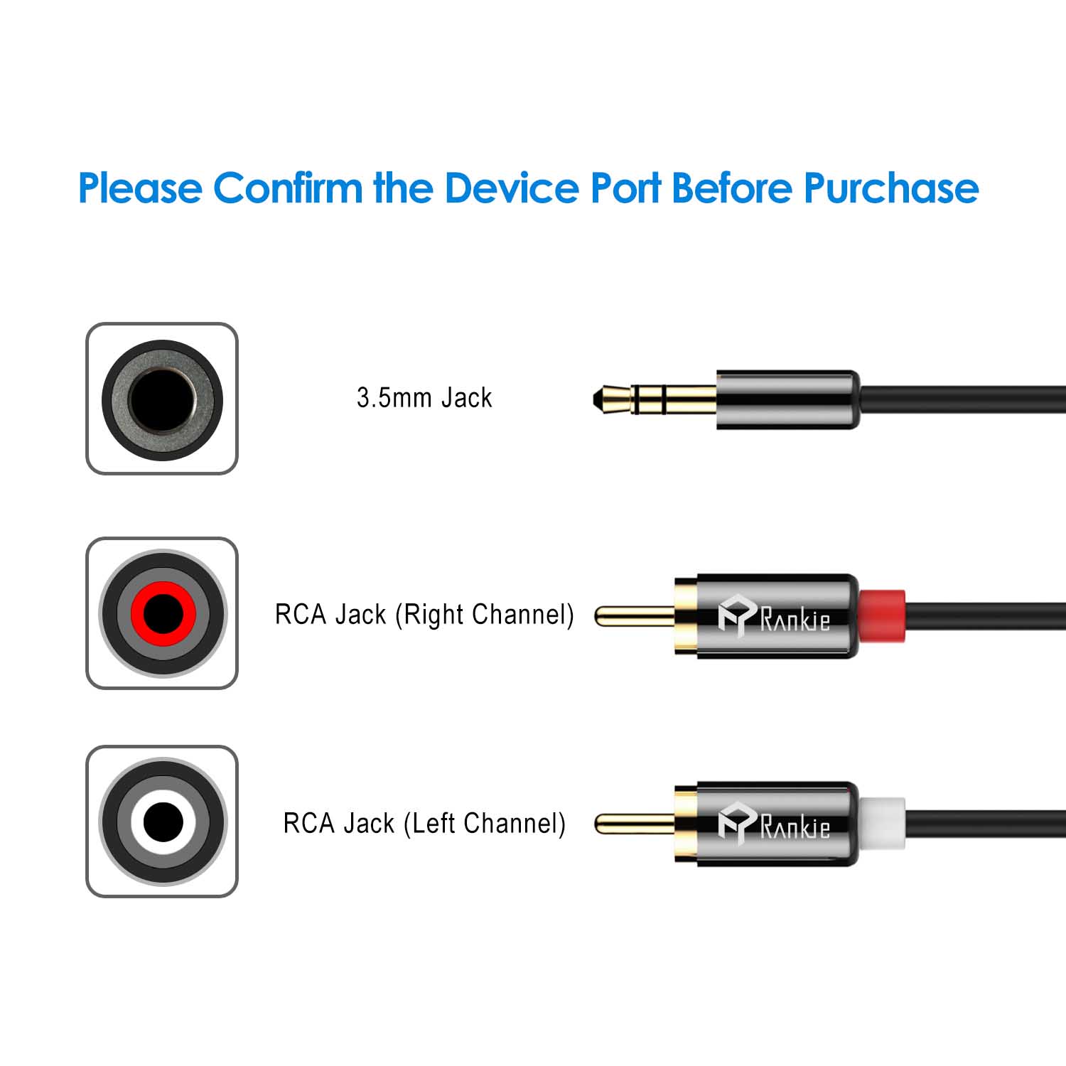 Rankie 3.5mm to 2-Male RCA Adapter Audio Stereo Cable, 6 Feet