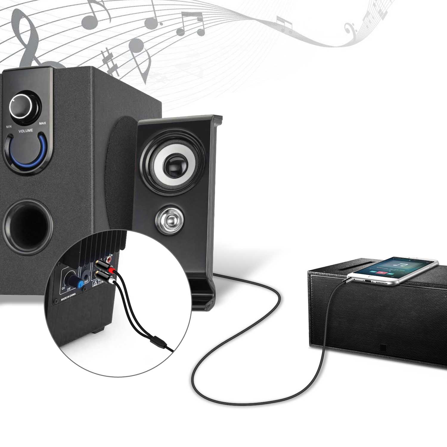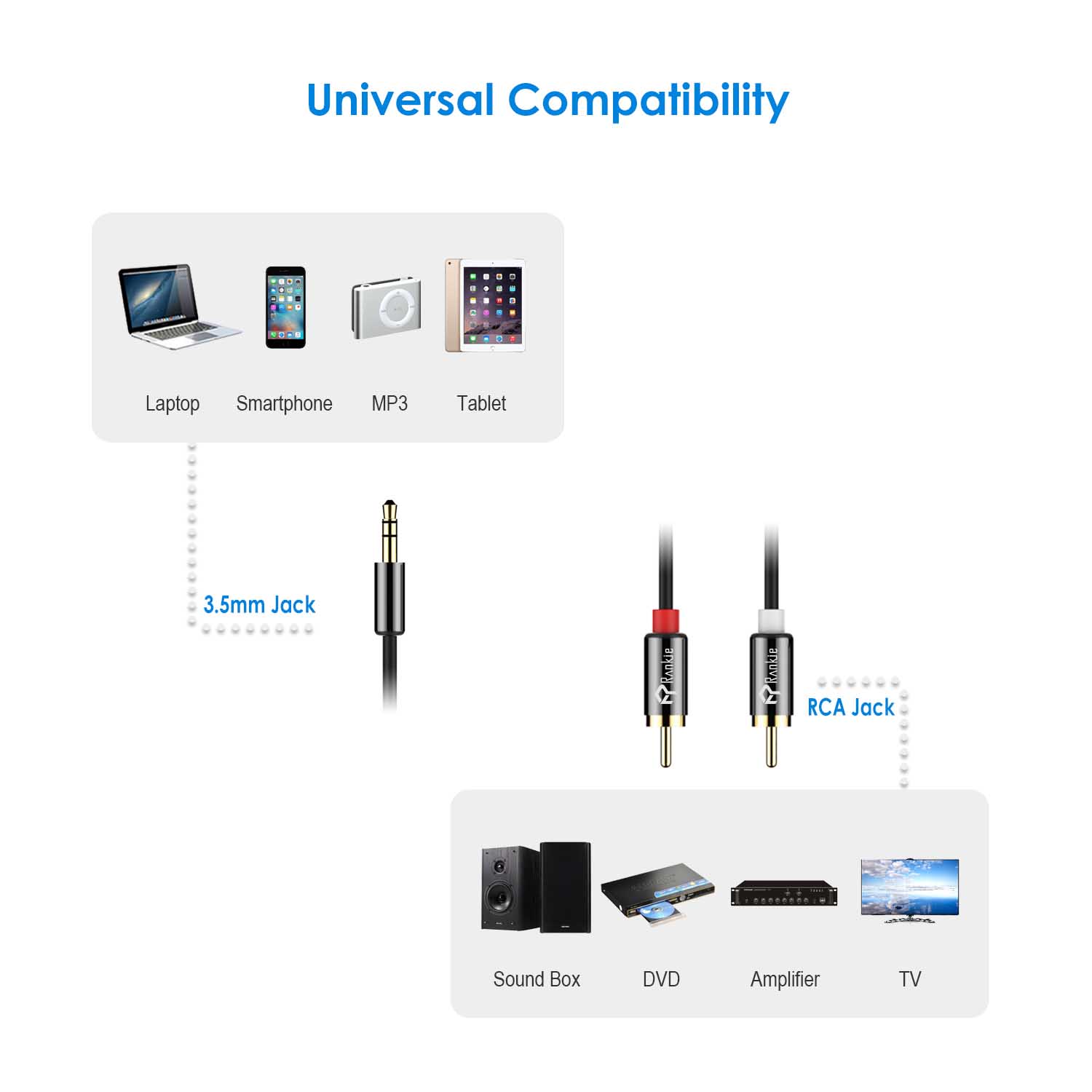Perfect for connecting smartphones, MP3 players, tablets or laptops with 3.5mm auxiliary ports to a TV, receiver, amplifier, projector, and more with RCA connectors