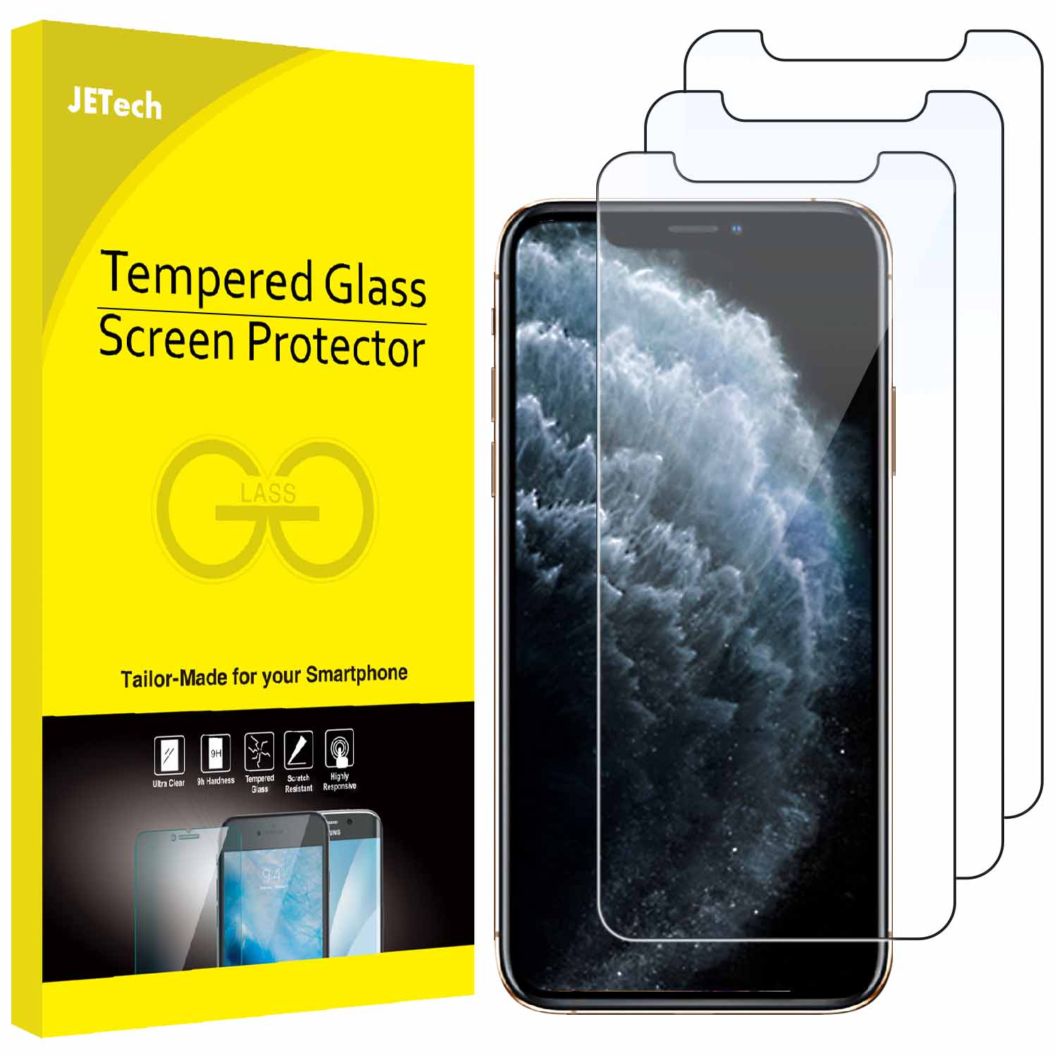 • 3-Pack. NOTE: Due to the round edge of iPhone 11 Pro, iPhone XS and iPhone X, the screen protector will NOT cover the full screen, only the flat area