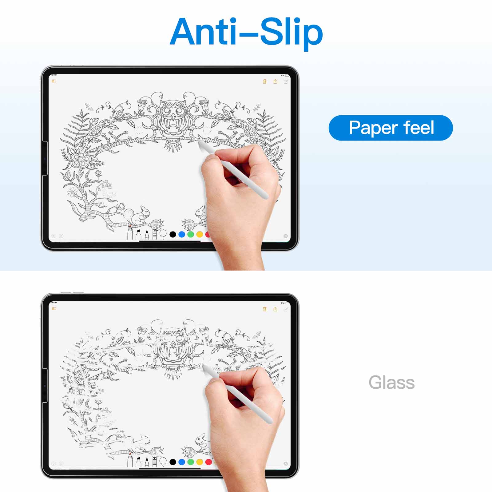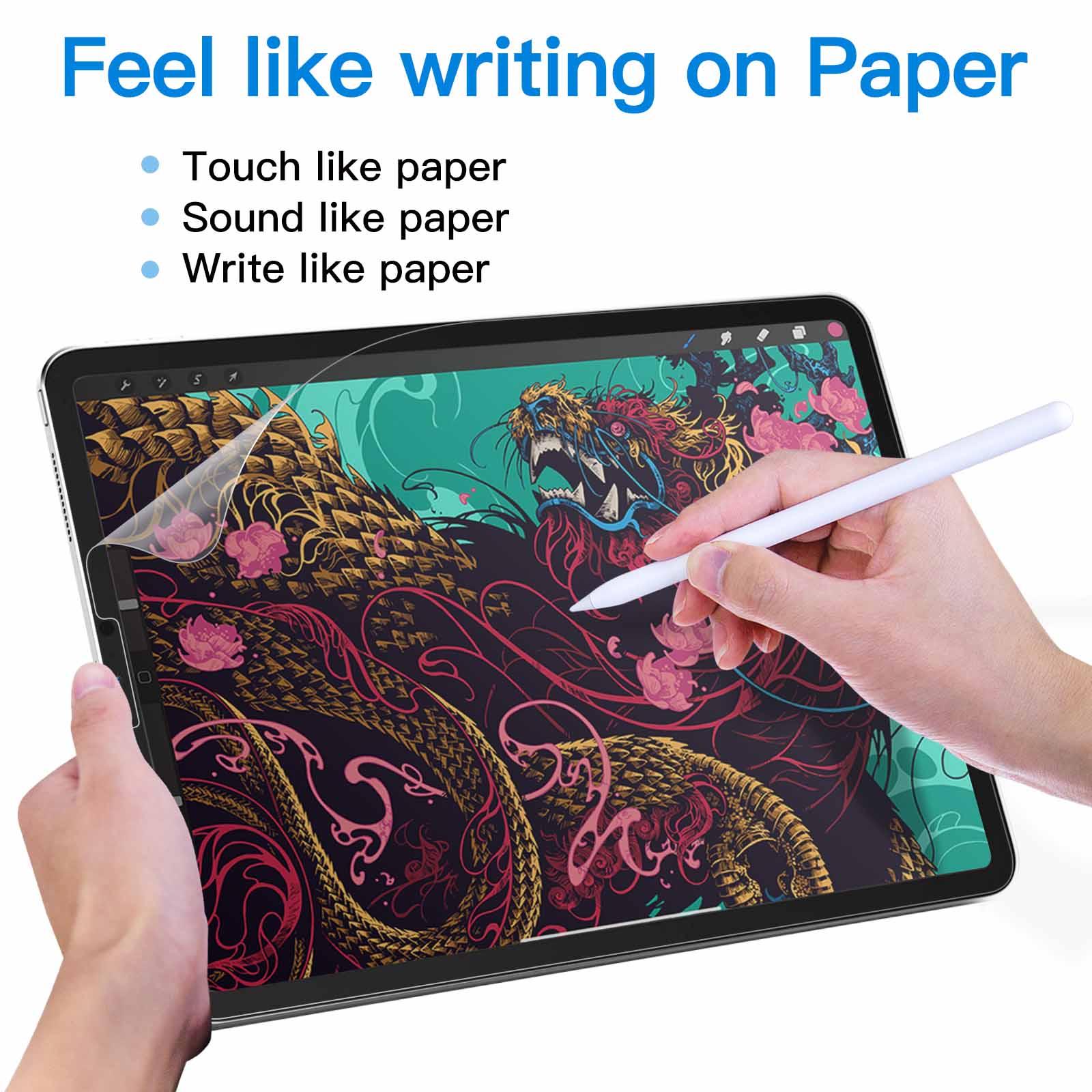 • [Paper Writing] High quality matte PET film feels writing on paper. Smooth&non-slip. Improves work efficiency and preserves original sensitivity of your screen. Mainly used for drawing, writing and sketching
