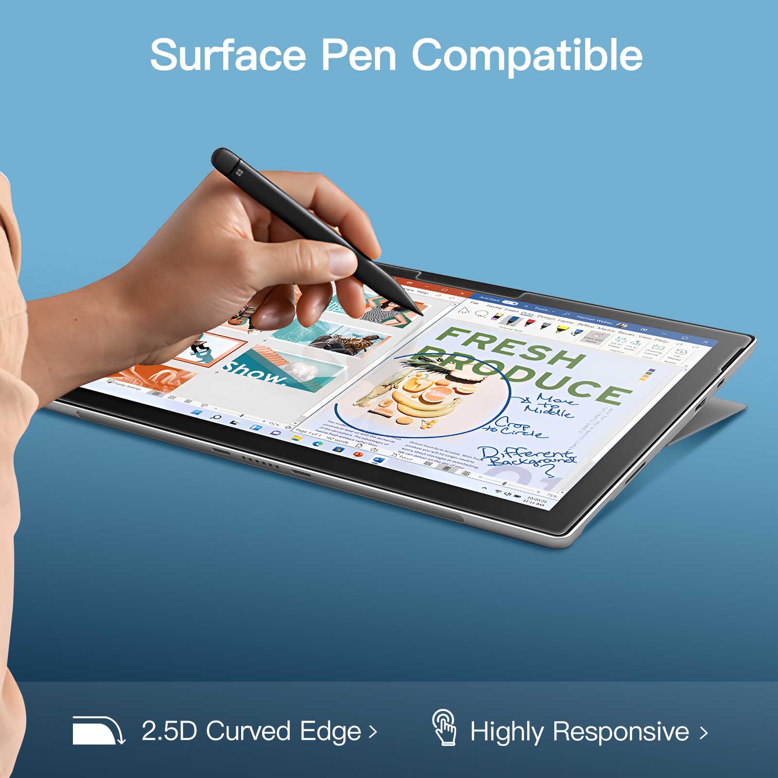 [High Sensitivity] Only 0.33 mm thickness glass. Allow an accurate and quick response on the screen. Besides, support Surface Pen, and you can draw and write on the screen smoothly