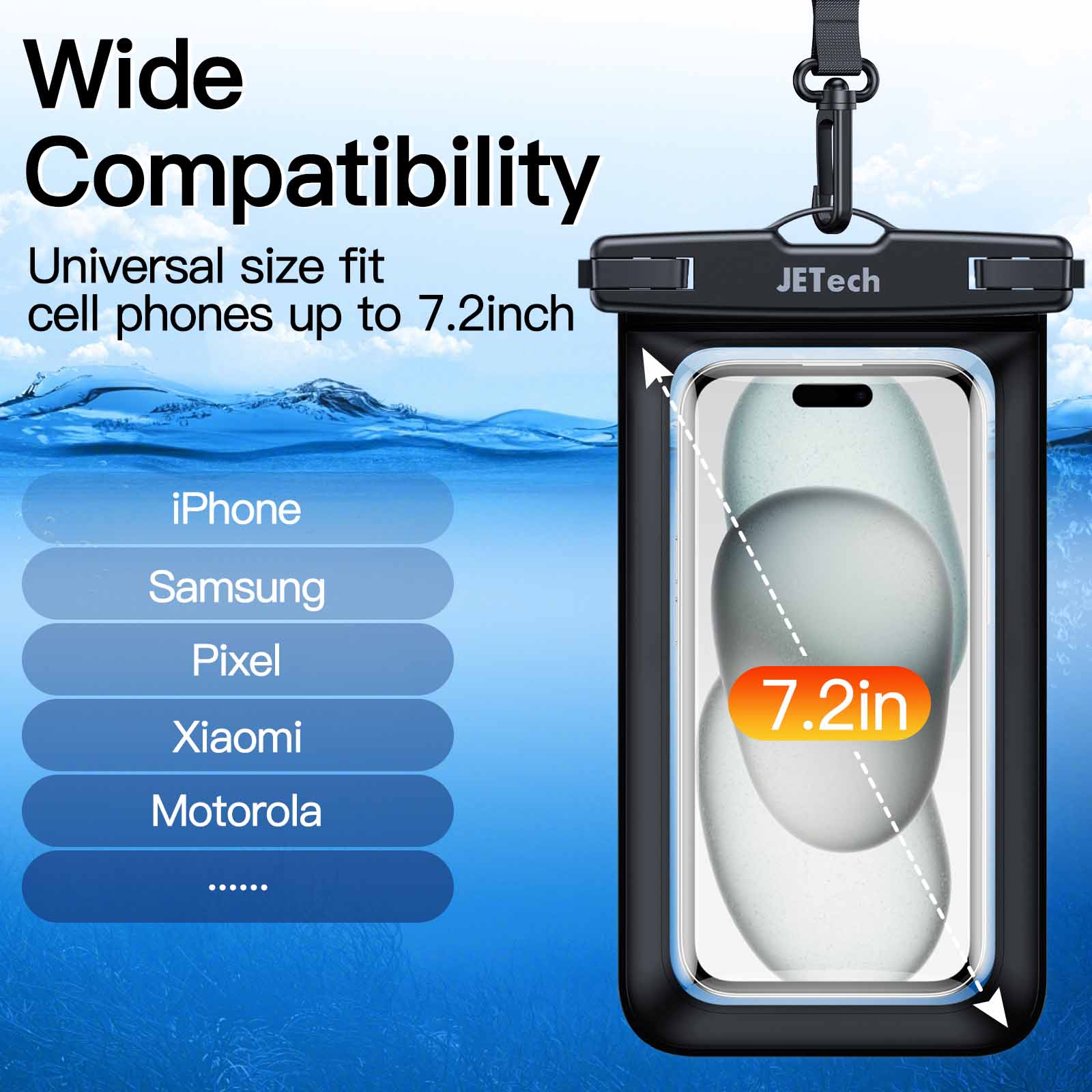 6 reviews for JETech Waterproof Phone Pouch, 2 Pack Water Proof Case for iPhone 17 16e 16 15 14 Air Pro Max Plus, Galaxy S25 S24 Ultra, Pixel 10 Series and Others up to 7.2 Inch, IPX8 Dry Bag