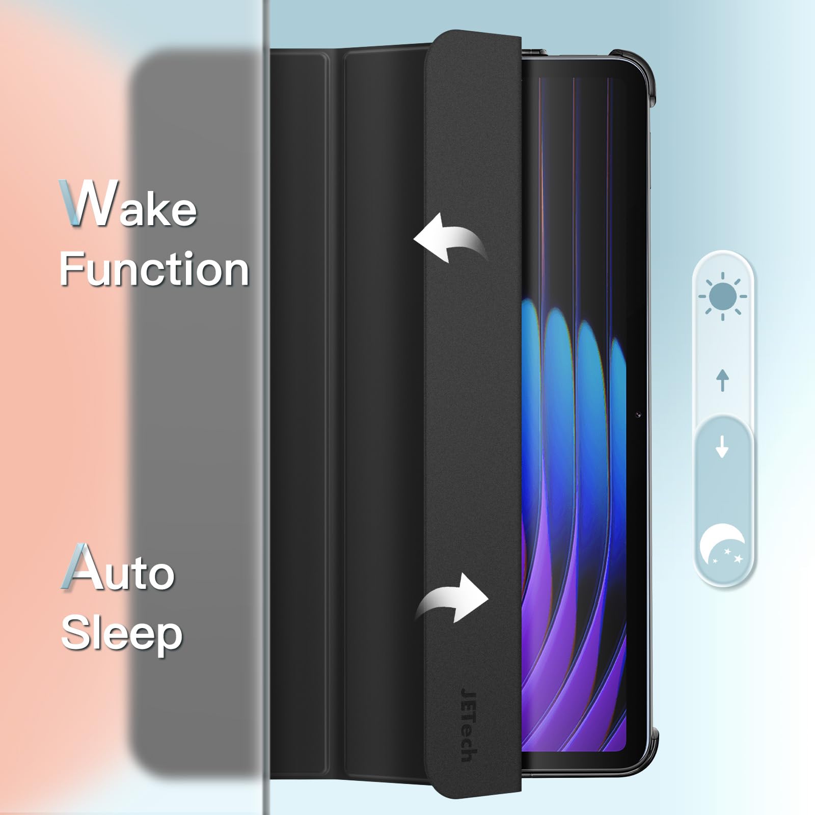 [Auto Wake/Sleep] Automatically wake up your tablet or put it into a sleep mode when the front cover is opened or closed. The strong magnetic closure ensures the cover stays securely in place