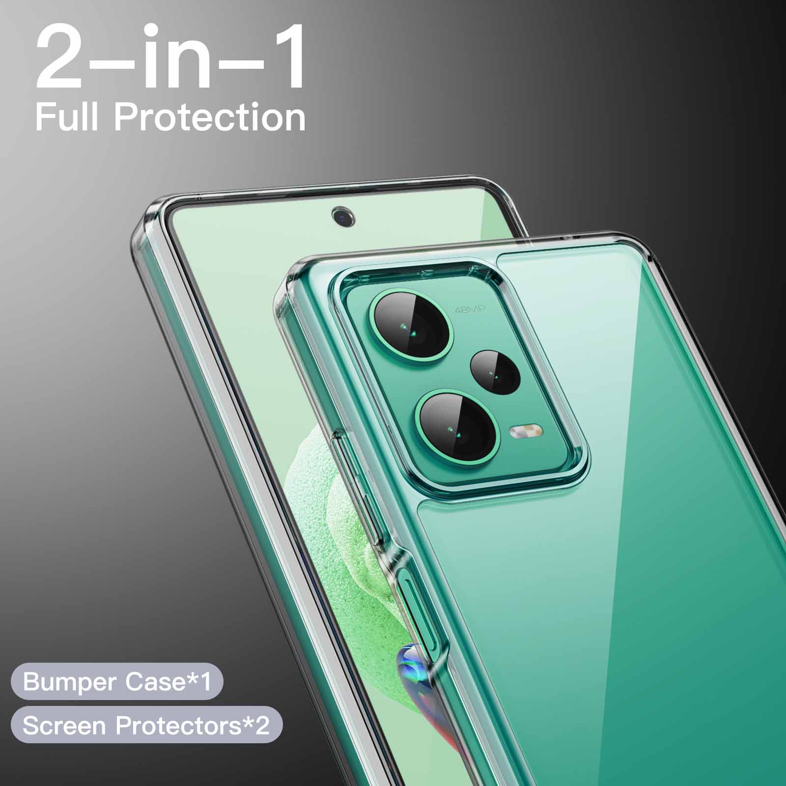 • [2-in-1 High Protection] Tailor-made for Xiaomi Redmi Note 12 5G. You will receive a protective clear case and 2-pack tempered glass screen protectors, bringing comprehensive protection to your device