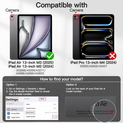 JETech Case for iPad Air 13-Inch M3/M2 (2025/2024), Slim Stand Hard Back Shell Smart Cover with Auto Wake/Sleep