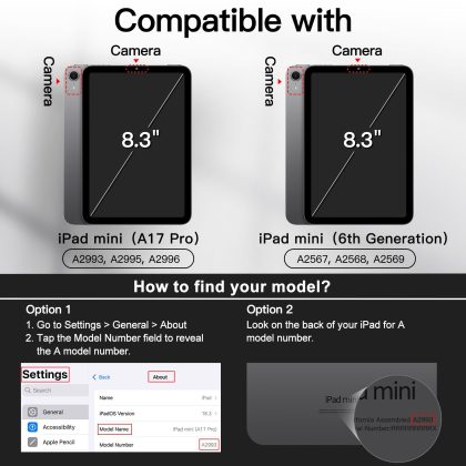 JETech Case for iPad mini (A17 Pro, 2024 Model, 7th Generation) / mini 6 (2021 Model, 6th Generation), Protective Hard Back Shell Soft-Touch Tablet Stand Cover, Auto Wake/Sleep