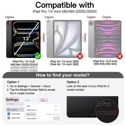 JETech Case for iPad Pro 13-Inch M5/M4 (2025/2024), Slim Stand Hard Back Shell Smart Cover with Auto Wake/Sleep