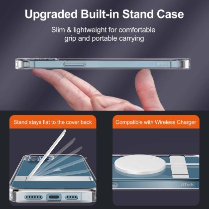 JETech Case for iPhone 12/12 Pro 6.1-Inch with Stand, Support Wireless Charging, Slim Shockproof Bumper Phone Cover, 3-Way Metal Kickstand
