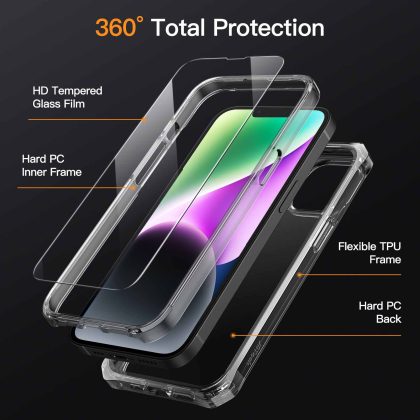 JETech Case for iPhone 14 6.1-Inch with Built-in Screen Protector Anti-Scratch, 360 Degree Full Body Rugged Phone Cover Clear Back